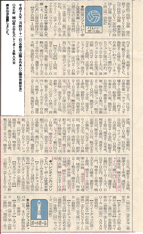 岡山県小学生バレーボール新人大会の結果が記載されました。