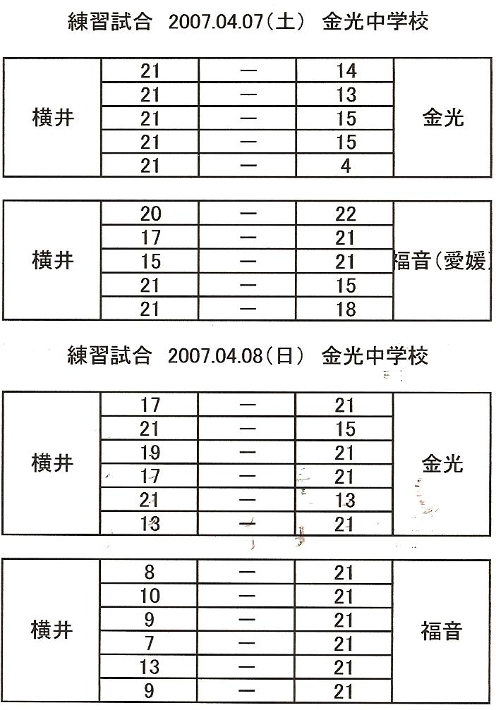 ■ 練習試合(金光中学校) [ NO. 2007040801-1 ]