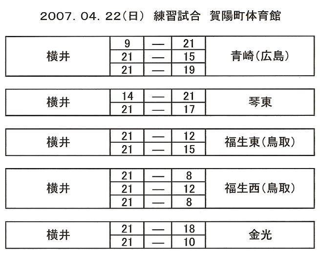 ■ 練習試合(賀陽町体育館) [ NO. 2007042201-1 ]