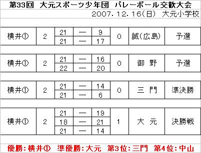 ■ 第33回大元スポーツ少年団バレーボール交歓大会 [ NO. 2007121601-1 ]